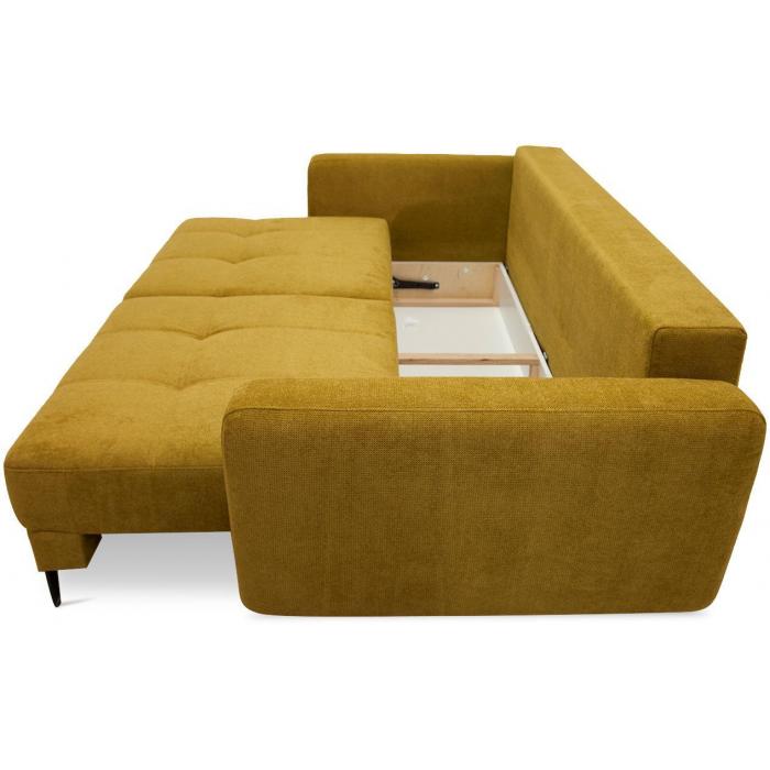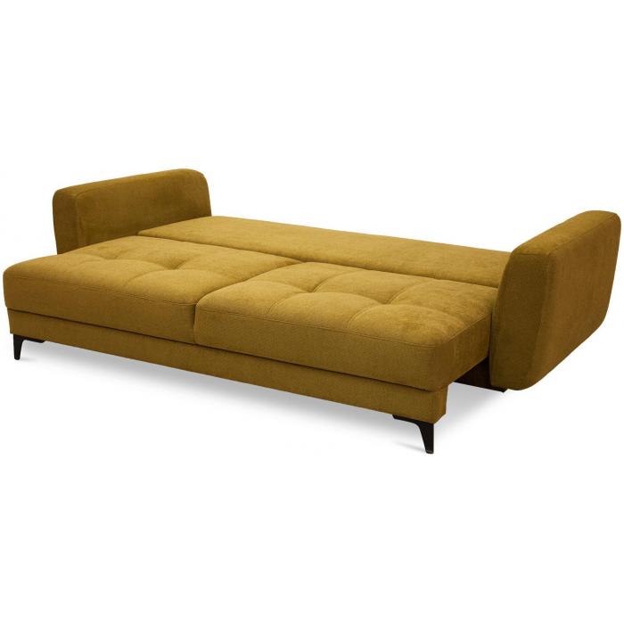 Powierzchnia spania po rozłożeniu wynosi 158x200 cm - optymalnie dla dwóch osób. Kanapa rozkładana Nesso wzbogacona jest o pojemnik na pościel - dodatkowe miejsce do przechowywania to dobre rozwiązanie zwłaszcza do małego mieszkania. Wypełnienie siedziska stanowią sprężyny faliste, które zapewniają komfort podczas relaksu.