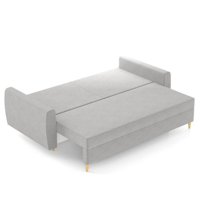 Kanapa Netro Lotus 11 to praktyczna i funkcjonalna kanapa zaprojektowana w nowoczesnym stylu. Mebel ten posiada funkcję spania oraz praktyczny pojemnik na pościel. Po rozłożeniu powierzchnia spania wynosi 140 x198cm. System jest bardzo prosty – najpierw wysuwamy siedzisko, a następnie składamy oparcie. Wypełnienie siedziska oraz oparcia mebla stanowią sprężyna falista i pianka, które zwiększają komfort podczas codziennego użytkowania. Świetnie sprawdzi się zarówno w salonie jak i pokoju dziennym, pełniąc funkcję miejsca spotkań.
