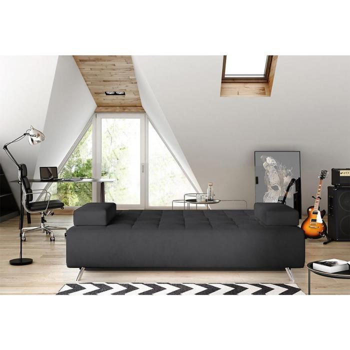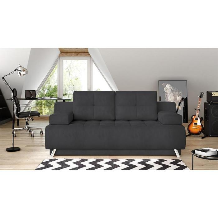 Sofa rozkładana z kolekcji Oslo posiada kompaktowe wymiary, dzięki czemu wpasuje się do każdego pokoju dziennego czy salonu. Poduszki znajdujące się po bokach kanapy są luźne.