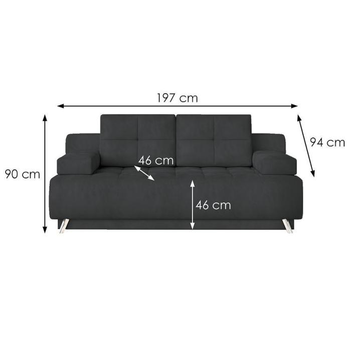 Rozkładana kanapa Oslo posiada zalety funkcji spania. Funkcja spania o wymiarach 144x196cm zapewni dodatkową przestrzeń w salonie bądź w innym pomieszczeniu w domu. Wypełnienie wersalki to sprężyny bonell, co zapewni pełen komfort relaksu i wypoczynku. Dodatkowe miejsce zapewnia pojemnik na pościel, który pozwala na schowanie pościeli, koca, poduszek lub innych przedmiotów.