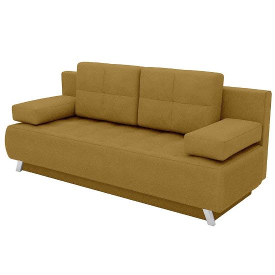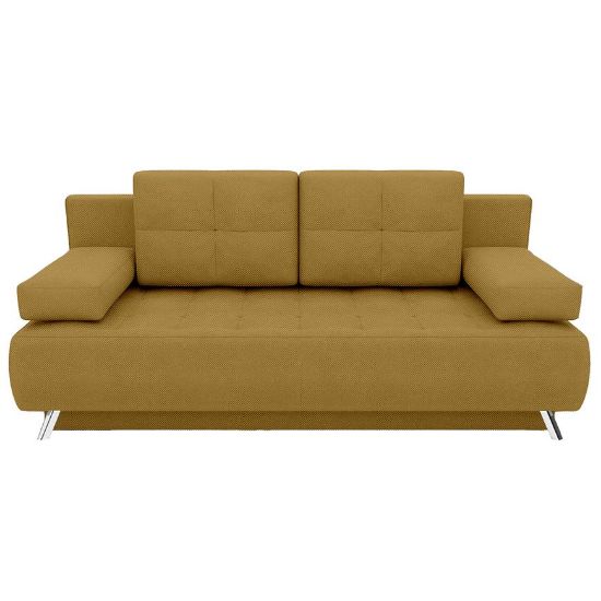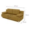 Wewnątrz kanapy znajduje się praktyczny schowek na pościel, który pozwala na przechowywanie koców, poduszek lub innych tekstyliów. Pojemnik jest obszerny, co dodatkowo zwiększa funkcjonalność mebla. Komfort siedzenia zapewnia sprężyna bonell, która równomiernie rozkłada ciężar i dostosowuje się do sylwetki, gwarantując wygodę.