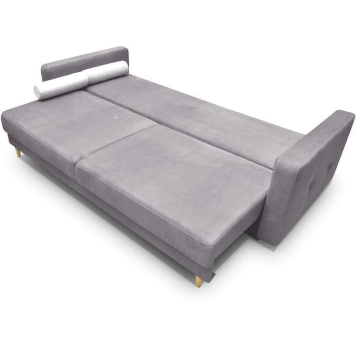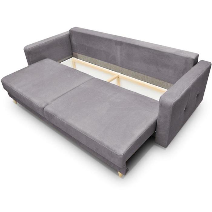 Kolekcja Oslo to kanapy, które świetnie wpiszą się w większość pomieszczeń. Kanapa z pewnością sprawdzi się w salonie czy pokoju dziennym, ale także w pokoju nastolatka pełniąc funkcję również wygodnego łóżka. Kanapa utrzymana jest w nowoczesnym, minimalistycznym stylu, dzięki tekstylnym dodatkom może nabrać odpowiedniego charakteru. Kanapa posiada funkcję spania. Po rozłożeniu powierzchnia użytkowa wynosi 140x200cm, śmiało pomieszczą się dwie osoby. Obicie kanapy stanowi tkanina, wypełnienie siedziska natomiast sprężyna bonell + falista, która dzięki swoim właściwościom poprawia komfort codziennego użytkowania. Dodatkowy atutem Sofy jest pojemnik na pościel, który pozwala utrzymać porządek i funkcjonalnie zagospodarować przestrzeń. Kanapę można szybko rozłożyć i złożyć dzięki zastosowanemu automatowi. Udogodnienie stanowią także podłokietniki, których funkcję pełnią boczne poduszki – dzięki takiemu rozwiązaniu zyskujemy dodatkową powierzchnię użytkową po ściągnięciu ich.