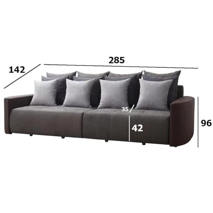 Kanapa Pegaz to wygodna sofa utrzymana w nowoczesnym stylu. Jej intensywny kolor sprawia, że postawiona w salonie od razu przyciągnie wzrok, stanowiąc ciekawy akcent dekoracyjny. Prostą formę uzupełnia efektowny design poduszek oparciowych, dzięki czemu kanapa Pegaz nabiera subtelnej elegancji. Nóżki w kolorze czarnym dopełniają całość, sprawiając, że model prezentuje się lekko, mimo dość sporych gabarytów. Zastosowane w siedzisku sprężyny faliste oparciu czynią odpoczynek jeszcze bardziej przyjemnym, a niewielka poduszki pełnią funkcję dekoracyjną, dopełniając oryginalny design kanapy Pegaz. Z wygodnej sofy może zmienić się w komfortowe łóżko dla dwóch osób, co zapewnia automat wspomagający rozkładanie DL. Dodatkowo pościel można umieścić w dużym i bardzo praktycznym pojemniku.