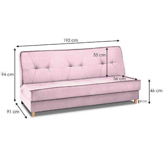 Po rozłożeniu to okazjonalne miejsce do spania o wymiarach 122x190 cm.Dodatkowo, schowek na pościel wyposażony w jedno pojemne wnętrze umożliwia przechowywanie pościeli i poduszek, zachowując porządek w salonie.