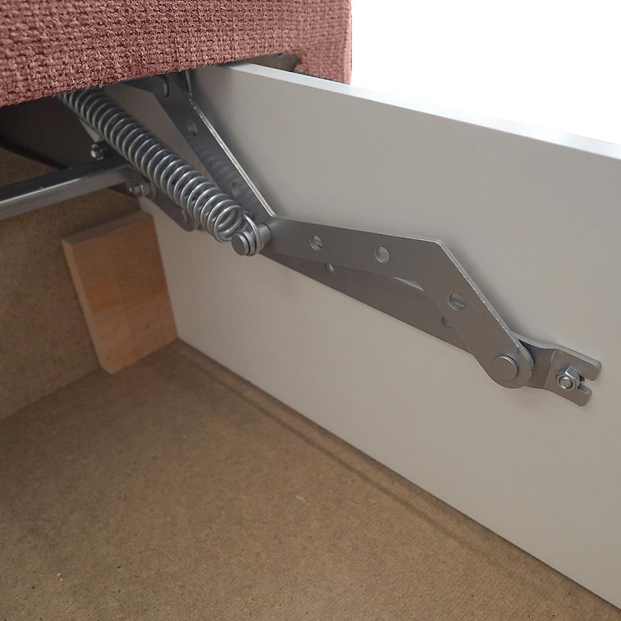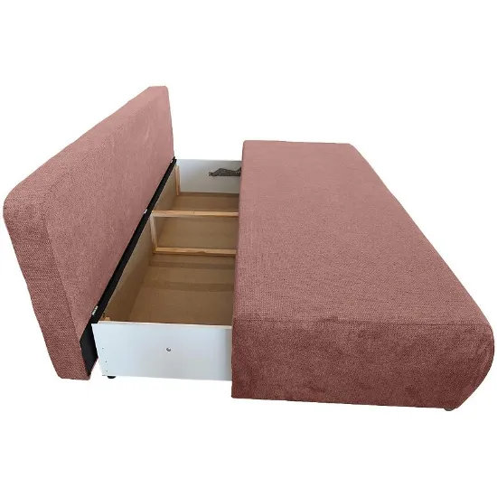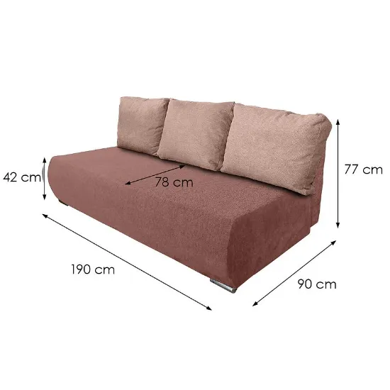 Dodatkowym atutem jest pojemny schowek na pościel, który ułatwia przechowywanie koców i poduszek. W zestawie znajdują się również poduszki oparciowe, zwiększające komfort odpoczynku. Głębokość siedziska wynosi 76 cm, wysokość siedziska od podłogi - 42 cm.