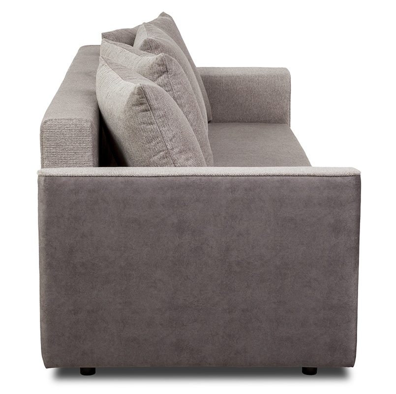 Boki oraz skrzynia kanapy zostały tapicerowane aksamitną tkaniną Zetta, która dodaje meblowi delikatności i miękkości. Tkanina ta wyróżnia się nie tylko estetyką, ale również dużą wytrzymałością, dzięki zastosowanej technologii Nano Block, która ogranicza wchłanianie rozlanych płynów.
