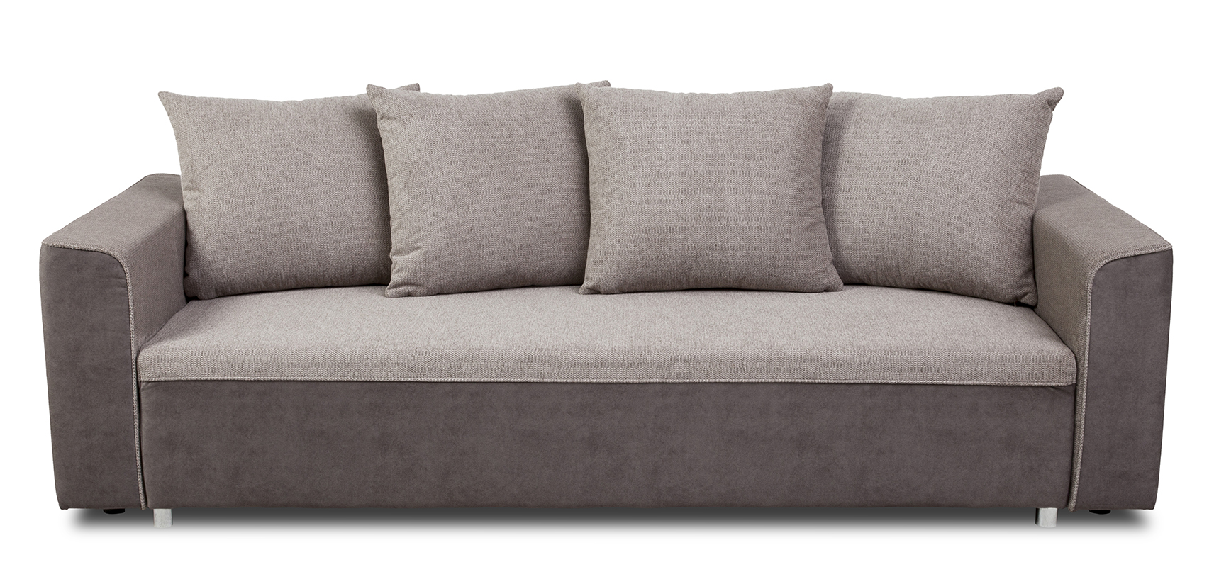 W komplecie z kanapą otrzymasz cztery eleganckie poduszki, które nie tylko pełnią funkcję oparcia, ale również stanowią stylowy element dekoracyjny, nadając wnętrzu przytulnego charakteru. Dodatkowo, tapicerka poduszek oraz siedziska kanapy wykonane są z wysokiej jakości tkaniny Aragon. Ta ciekawa melanżowa tkanina charakteryzuje się nie tylko trwałością, ale także posiada powłokę Water Repellent, która skutecznie zatrzymuje wodę, zapewniając ochronę przed ewentualnymi płynami.