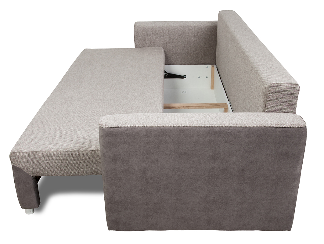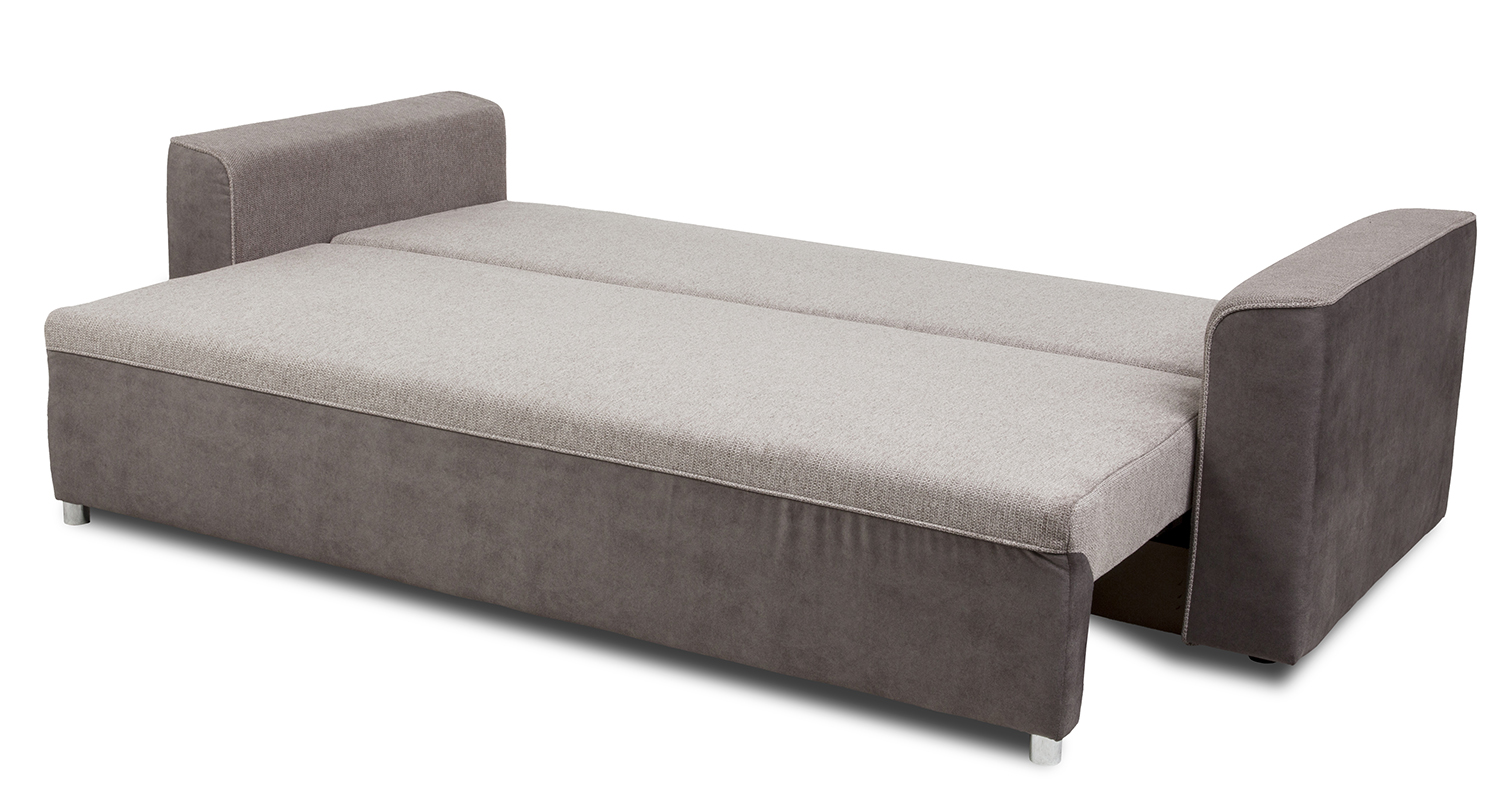 Innowacyjny system rozkładania typu DL to kolejna cecha wyróżniająca ten mebel. Dzięki niemu, z wygodnej kanapy dla trzech osób, w mgnieniu oka można stworzyć przestronne łóżko o imponujących wymiarach 146 x 200 cm. To idealne rozwiązanie dla gości lub w sytuacjach, gdy potrzebujesz dodatkowego miejsca do spania. Dodatkowym atutem jest pojemnik na pościel, który pomaga utrzymać porządek w salonie.