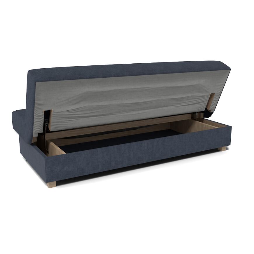Kanapa Salsa Astra 15 posiada jeden schowek na pościel, umożliwiający wygodne przechowywanie kołdry, poduszek lub innych tekstyliów. Schowek jest łatwo dostępny i nie zajmuje dodatkowej przestrzeni, zwiększając funkcjonalność mebla.