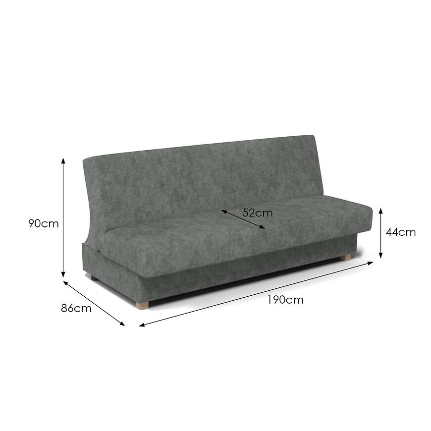 Kanapa ma 190 cm szerokości, 86 cm głębokości oraz 90 cm wysokości, co pozwala zachować proporcje przy jednoczesnym zapewnieniu funkcji spania. Kanapa nie wymaga złożenia, gotowa do użycia od razu po dostawie.