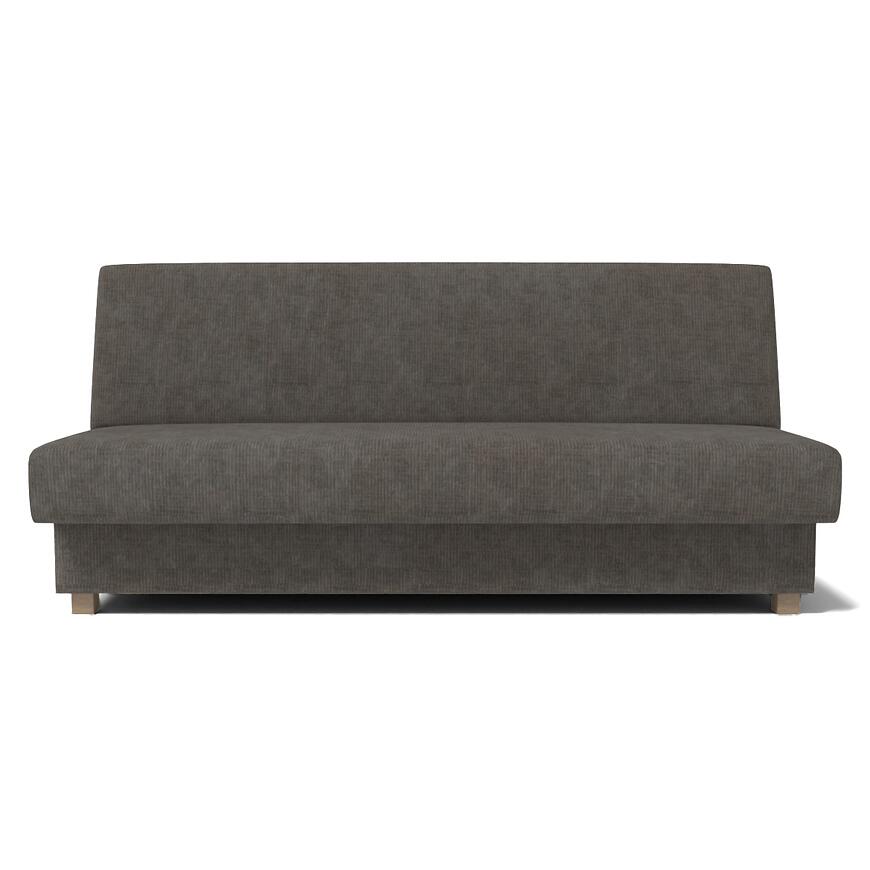 Konstrukcja oparta jest na nogach drewnianych, które zapewniają trwałość i stabilność. Kanapa nie posiada regulowanego oparcia, podłokietników ani zagłówka, co podkreśla prostą, klasyczną linię mebla. Waga 56 kg świadczy o solidnym wykonaniu.