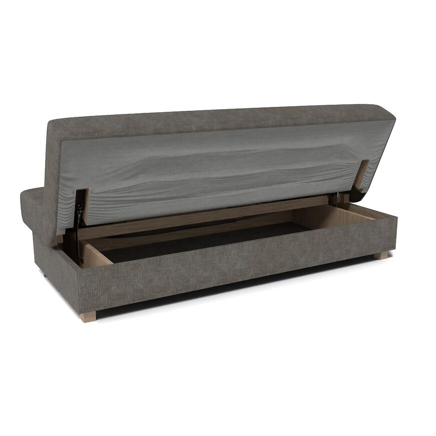 Kanapa Salsa Astra 5 posiada jeden schowek na pościel, idealny do przechowywania kołdry, poduszek lub innych tekstyliów. Schowek jest łatwo dostępny i nie zabiera dodatkowej przestrzeni, zwiększając funkcjonalność mebla.