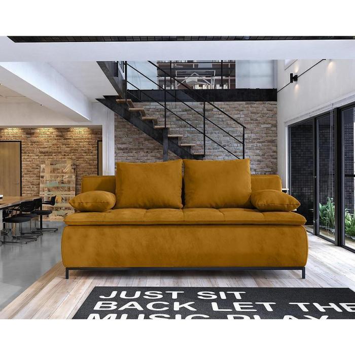 Sofa rozkładana z kolekcji Sweet posiada kompaktowe wymiary, dzięki czemu wpasuje się do każdego pokoju dziennego czy salonu.
