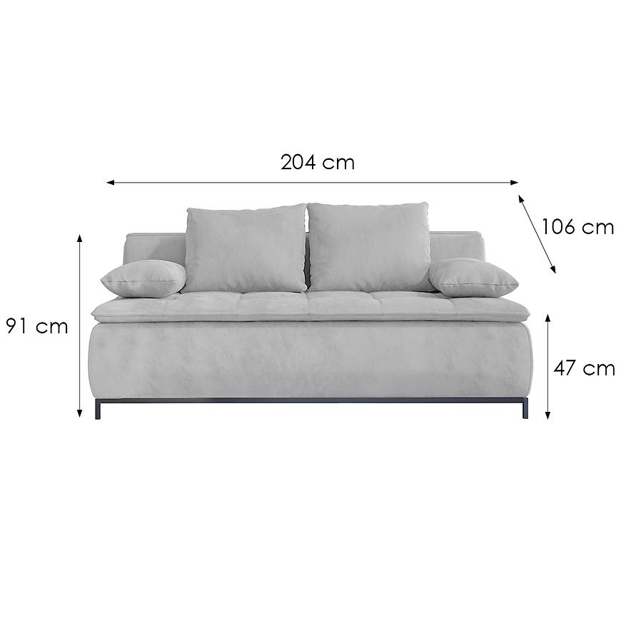 Kanapa wyposażona jest w funkcję spania, co czyni ją rozwiązaniem do okazjonalnego spania. Po rozłożeniu to miejsce do spania o wymiarach 144x200 cm, a system rozkładania typu DL sprawia, że przekształcenie jest szybkie i intuicyjne. Dodatkowo, kanapa posiada schowek na pościel, co pozwala na wygodne przechowywanie kołder, poduszek i innych akcesoriów sypialnianych. Jeden pojemnik na pościel umieszczony pod siedziskiem zapewnia dodatkową funkcjonalność, pomagając utrzymać porządek w pomieszczeniu.