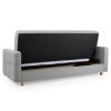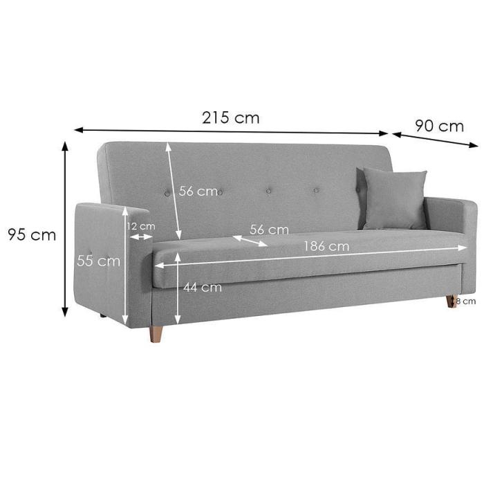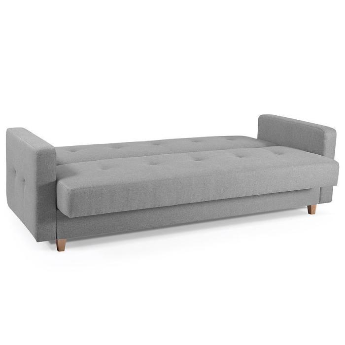 Kanapa Tango w kolorze jasnym szarym to praktyczny i stylowy mebel zaprojektowany z myślą o nowoczesnych wnętrzach. Posiada funkcję okazjonalnego spania oraz praktyczny pojemnik na pościel. Po rozłożeniu oferuje powierzchnię 122x190 cm, a jej prosty system rozkładania typu wersalkowego zapewnia wygodę użytkowania. Wypełnienie ze sprężyny falistej zwiększa komfort siedzenia i odpoczynku. Kanapa doskonale sprawdzi się w salonie lub pokoju dziennym, tworząc wygodną przestrzeń do relaksu i spotkań.