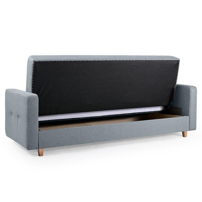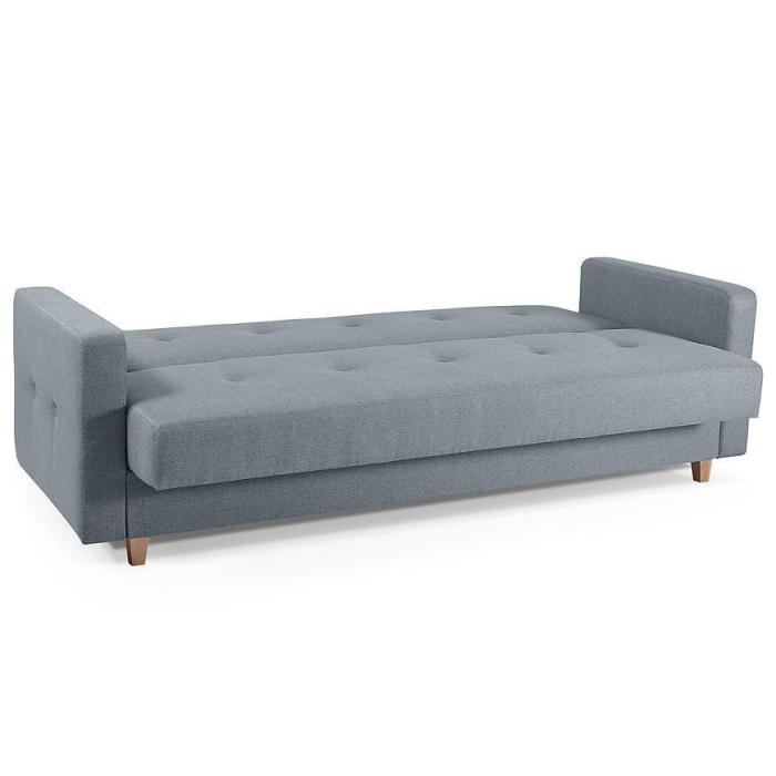 Kanapa Tango w kolorze niebieskim to praktyczny i stylowy mebel zaprojektowany z myślą o nowoczesnych wnętrzach. Posiada funkcję okazjonalnego spania oraz praktyczny pojemnik na pościel. Po rozłożeniu oferuje powierzchnię 122x190 cm, a jej prosty system rozkładania typu wersalkowego zapewnia wygodę użytkowania. Wypełnienie ze sprężyny falistej zwiększa komfort siedzenia i odpoczynku. Kanapa doskonale sprawdzi się w salonie lub pokoju dziennym, tworząc wygodną przestrzeń do relaksu i spotkań.