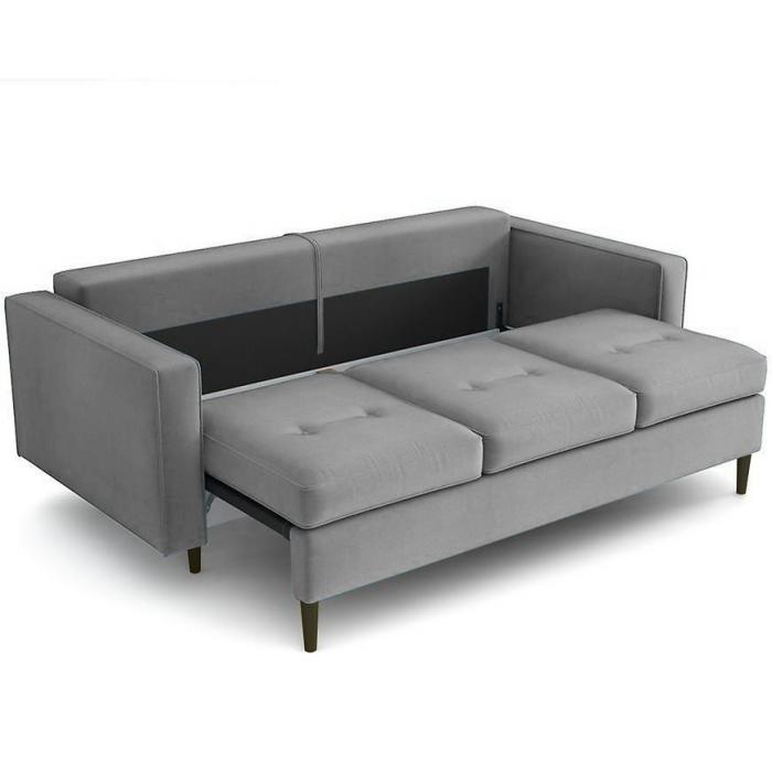 Kanapa Venta Zetta 302 to praktyczna i funkcjonalna kanapa zaprojektowana w nowoczesnym stylu. Mebel ten posiada funkcję spania oraz praktyczny pojemnik na pościel. Po rozłożeniu powierzchnia spania wynosi 140 x195cm. System jest bardzo prosty – najpierw wysuwamy siedzisko, a następnie składamy oparcie. Wypełnienie siedziska oraz oparcia mebla stanowią sprężyna falista, które zwiększają komfort podczas codziennego użytkowania. Świetnie sprawdzi się zarówno w salonie jak i pokoju dziennym, pełniąc funkcję zarówno miejsca spotkań jak i miejsca do spania.