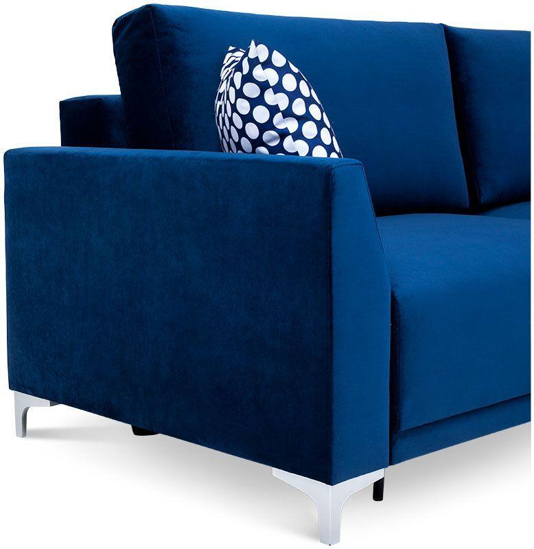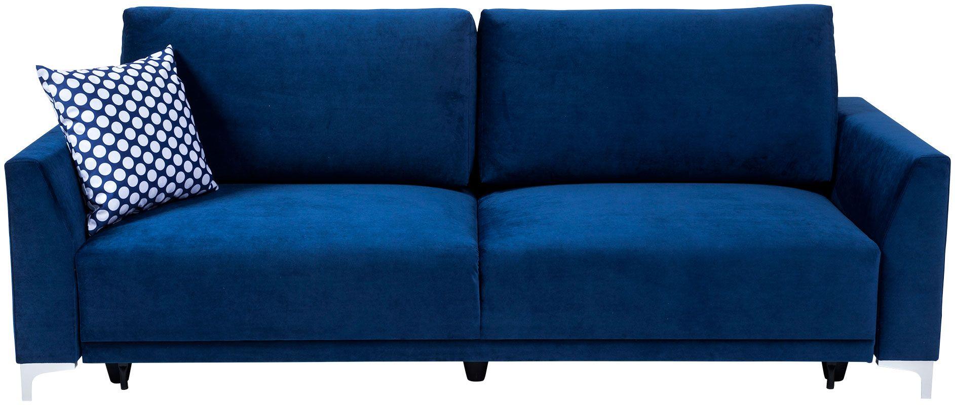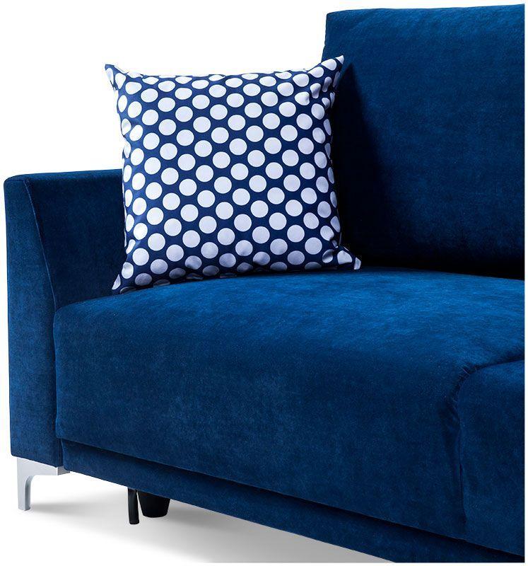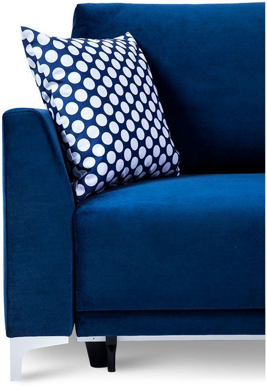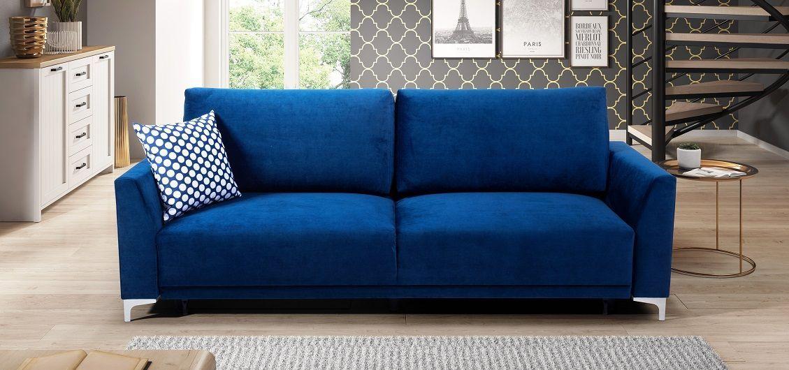 Kanapa Verdi łączy funkcjonalność i komfort wypoczynku w jednym. Mebel ten uzupełni każdy pokój dzienny, stając się miejscem odprężenia i relaksu dla całej rodziny. Ze względu na swój niebieski kolor Verdi kanapa, będzie stanowić ciekawy akcent kolorystyczny we wnętrzu, dodając mu wyrazu i przytulności zarazem. Stabilne poduszki zapewniają odpowiednie podparcie pleców, a zastosowane w siedzisku sprężyny faliste sprawiają, że odpoczynek na tej sofie jest niezwykle wygodny. Kanapę Verdi można rozłożyć bez trudu, co umożliwia automatyczny system wspomagający rozkładanie. Tym sposobem kanapa Verdi Abra staje się wygodnym miejscem do spania. Pojemnik na pościel pozwoli zachować ład i porządek w pomieszczeniu, stanowiąc dodatkowe miejsce do przechowywania. Mebel dopełniają plastikowe nóżki z efektem szlifowanego aluminium, gwarantując stabilność konstrukcji. W cenie kanapy dwie stabilne poduszki oparciowe oraz mała ozdobna. Poduszka ozdobna wykonana z tkaniny XX 647 biało niebieskie grochy. Wysokość siedziska kanapy od podłogi 72 cm.