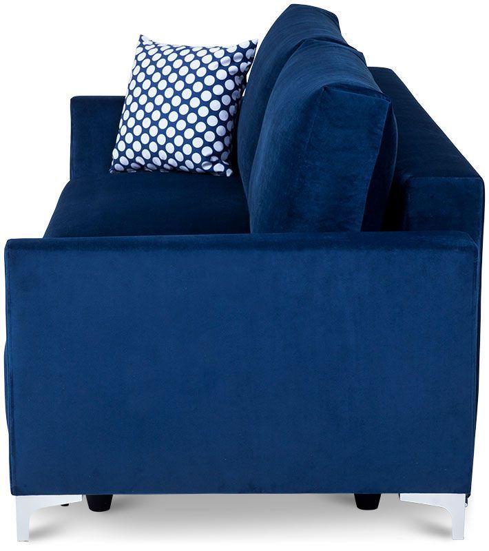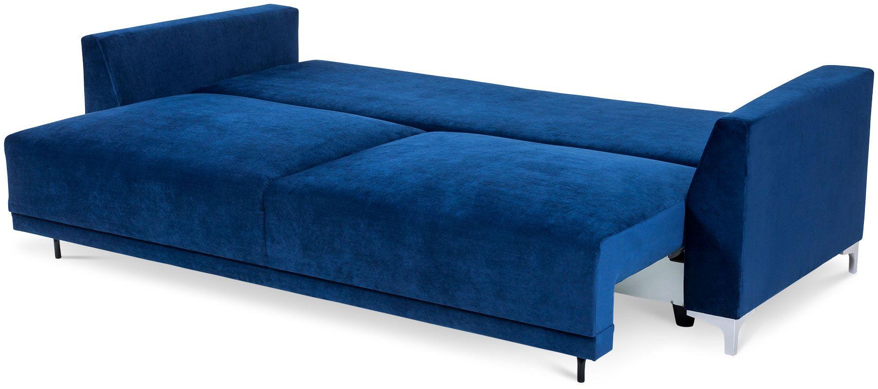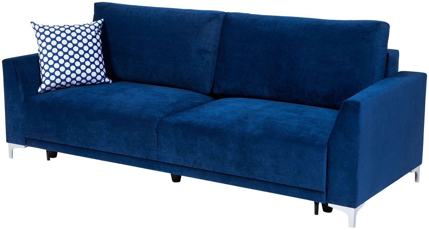 Kanapa Verdi łączy funkcjonalność i komfort wypoczynku w jednym. Mebel ten uzupełni każdy pokój dzienny, stając się miejscem odprężenia i relaksu dla całej rodziny. Ze względu na swój niebieski kolor Verdi kanapa, będzie stanowić ciekawy akcent kolorystyczny we wnętrzu, dodając mu wyrazu i przytulności zarazem. Stabilne poduszki zapewniają odpowiednie podparcie pleców, a zastosowane w siedzisku sprężyny faliste sprawiają, że odpoczynek na tej sofie jest niezwykle wygodny. Kanapę Verdi można rozłożyć bez trudu, co umożliwia automatyczny system wspomagający rozkładanie. Tym sposobem kanapa Verdi Abra staje się wygodnym miejscem do spania. Pojemnik na pościel pozwoli zachować ład i porządek w pomieszczeniu, stanowiąc dodatkowe miejsce do przechowywania. Mebel dopełniają plastikowe nóżki z efektem szlifowanego aluminium, gwarantując stabilność konstrukcji. W cenie kanapy dwie stabilne poduszki oparciowe oraz mała ozdobna. Poduszka ozdobna wykonana z tkaniny XX 647 biało niebieskie grochy. Wysokość siedziska kanapy od podłogi 72 cm.