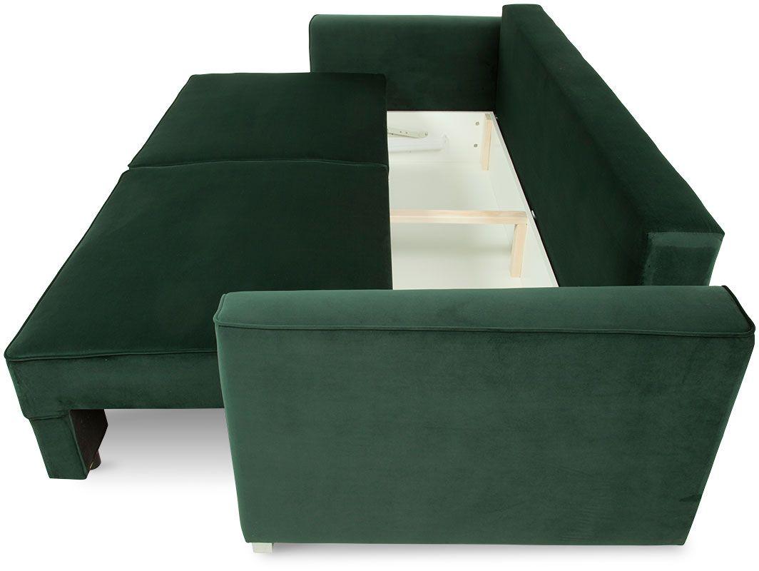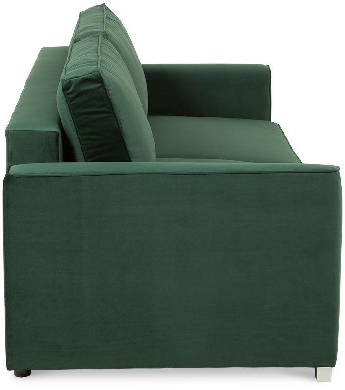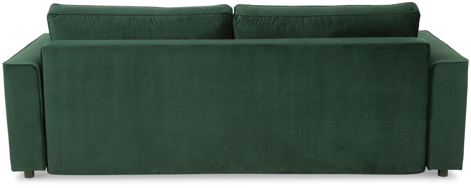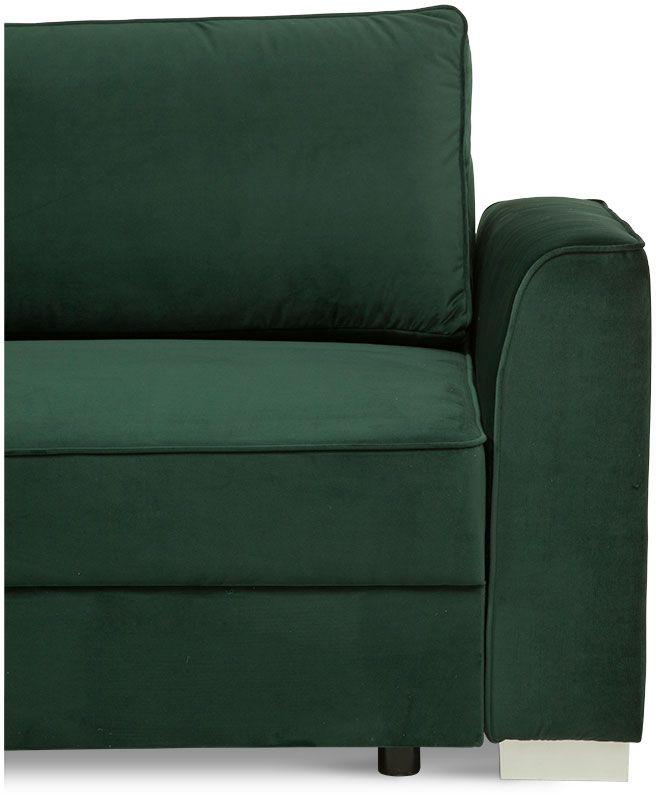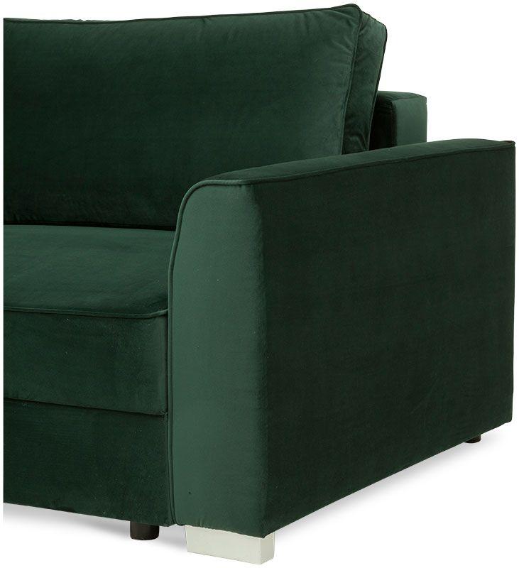 Kanapa Wenus to super wygodna i nowoczesna komoda w kolorze ciemnej zieleni. Komoda Wenus to 3 osobowy mebel z funkcją spania i mechanizmem ułatwiającym rozkładanie. Mebel ten posiada w komplecie 2 poduszki oparciowe. Kanapa ta posiada obicie miękką i przyjemną w dotyku tkaniną velver Rviera w stylowym kolorze ciemnej zieleni. Kanapa świetnie wpisze się w nowoczesne wnętrza w industrialnym czy minimalistycznym stylu. W siedzisku mebla zastosowano sprężyny faliste, w oparciu sprężyny bonellowe, które zwiększają komfort codziennego użytkowania zarówno w dzień jak i w nocy.. Mebel ten rozkłada się w bardzo prosty i szybki sposób, bez problemy można zamienić codzienną kanapę w nocne, wygodne łóżko do spania. Po rozłożeniu powierzchnia spania wynosi 153 cm x 196 cm, podobnie jak w dwuosobowym łóżku. Element dekoracyjny stanowi cienka, obszyta lamówka zarówno w poduszkach oparciowych jak i bryle kanapy. Kanapa dostępna w dwóch wariantach kolorystycznych: brąz oraz ciemna zieleń. Z pewnością każdy znajdzie coś dla siebie.