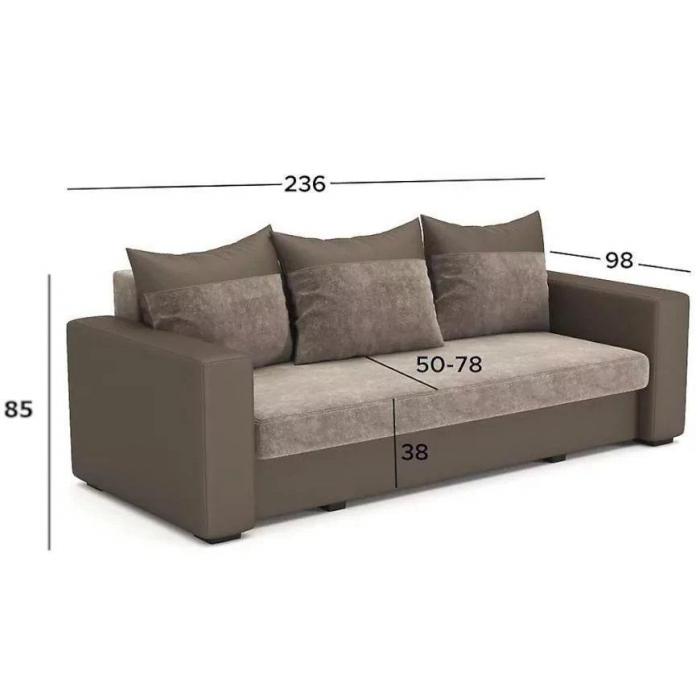 Ponadczasowa trzyosobowa kanapa odpowiednia zarówno do wnętrz klasycznych i nowoczesnych. Posiada funkcję spania i praktyczny pojemnik na pościel. Zdejmowane poduszki zwiększają powierzchnię użytkową mebla, a wbudowane sprężyny typu bonell zwiększają komfort użytkowania.