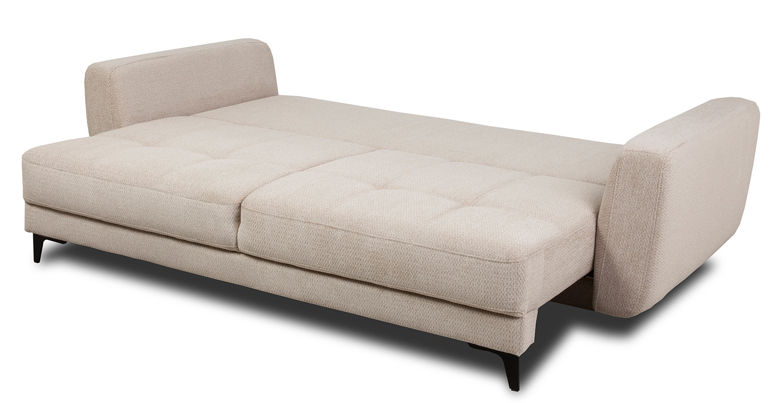 Jedną z głównych cech kanapy Nesso jest jej funkcja spania, która umożliwia błyskawiczne przekształcenie sofy w wygodne łóżko dla gości. Automat wspomagający rozkładanie oraz pojemnik na pościel, umieszczony strategicznie pod siedziskiem, sprawiają, że przechowywanie pościeli czy dodatkowych kołder nie stanowi problemu. Sposób rozkładania typu DL został zaprojektowany w sposób intuicyjny - po wysunięciu siedziska do przodu, oparcie, które jest zamocowane do skrzyni pościelowej na trzech zawiasach, składa się płasko, tworząc obszerną powierzchnię spania o wymiarach 158x200 cm.