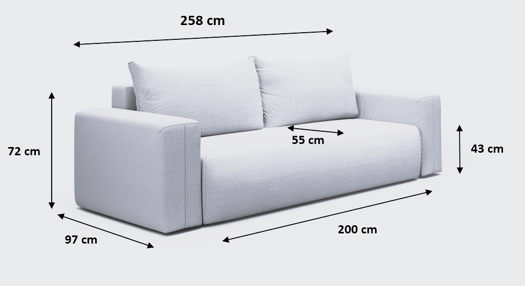 Nóżki kanapy wykonane są z trwałego tworzywa sztucznego w kolorze czarnym, co nadaje produktowi nowoczesny i stylowy charakter. Dodatkowym atutem jest pojemnik na pościel, który umożliwia przechowywanie dodatkowych akcesoriów w łatwy i dyskretny sposób.
