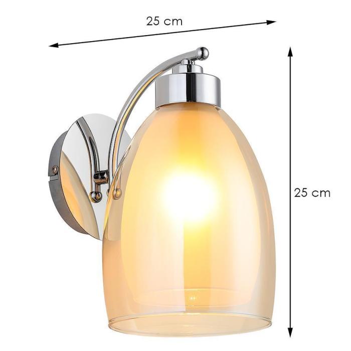 Obudowa wykonana z materiałów mieszanych w kolorze żółtym z chromowanymi elementami nadaje lampie nowoczesny charakter i lekkość. Kinkiet przeznaczony jest do montażu wewnętrznego (IP20).