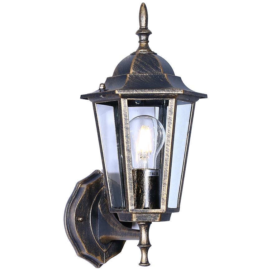 Kinkiet ARRAIA 6497 ZŁOTY KG1 wykonany jest z aluminium i szkła w eleganckim złotym kolorze. Przystosowany do jednej żarówki E27 o maksymalnej mocy 15 W (brak w zestawie). Nie posiada funkcji przyciemniania ani regulacji kierunku świecenia. Zasilany sieciowo 230 V, posiada klasę ochronności II oraz klasę szczelności IP44, co pozwala na montaż również w miejscach narażonych na wilgoć. Wymiary kinkietu to 21,5 cm szerokości, 36,5 cm wysokości i 17 cm długości, a jego waga wynosi 0,72 kg.