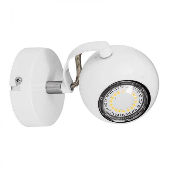 Jednopunktowy spot na żarówkę GU 10 w kolorze białym, idealny na sufit bądź ścianę w pomieszczeniu, w którym potrzeba jest kierunkowego oświetlenia.