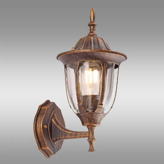 Kinkiet MANOEL 6496 w złotym kolorze to elegancka lampa ścienna wykonana z aluminium i szkła, idealna zarówno do wnętrz, jak i na zewnątrz dzięki klasie szczelności IP44. Wyposażony w 1 punkt świetlny z gwintem E27, przystosowany do żarówek o mocy do 15W (brak w zestawie). Zasilany sieciowo (230V), bez opcji ściemniania i regulacji kierunku światła. Klasyczna forma o wymiarach 20×36,5×15 cm łączy dekoracyjny charakter z funkcjonalnością, tworząc efektowny akcent świetlny. Doskonale sprawdzi się przy wejściu, na tarasie, balkonie czy w korytarzu, dodając przestrzeni wyjątkowego, luksusowego stylu.