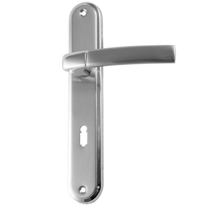 W zestawie: komplet klamek (2 szt), elementy montażowe