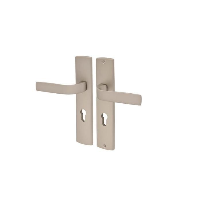 Model BELVIA R74 wyróżnia się długim szyldem oraz subtelnym, satynowym połyskiem, który dodaje drzwiom prestiżu. Powierzchnia w kolorze niklu jest odporna na zarysowania i łatwa w utrzymaniu czystości, dzięki czemu klamka zachowuje nienaganny wygląd przez lata.