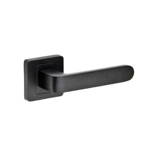 Klamka drzwiowa AGNES R62 w kolorze czarnym do drzwi wewnętrznych. Kwadratowa rozeta i nowoczesny design idealny do minimalistycznych wnętrz.
