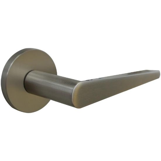 Klamka do drzwi wewnętrznych CAPRI w kolorze nikiel mat na rozecie okrągłej. W opakowaniu komplet.