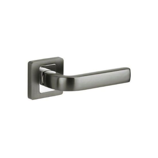 Klamka do drzwi wewnętrzych ENTRA w kolorze chrom/antracyt. W opakowaniu znajduje się kompletna klamka z zestawem montażowym.