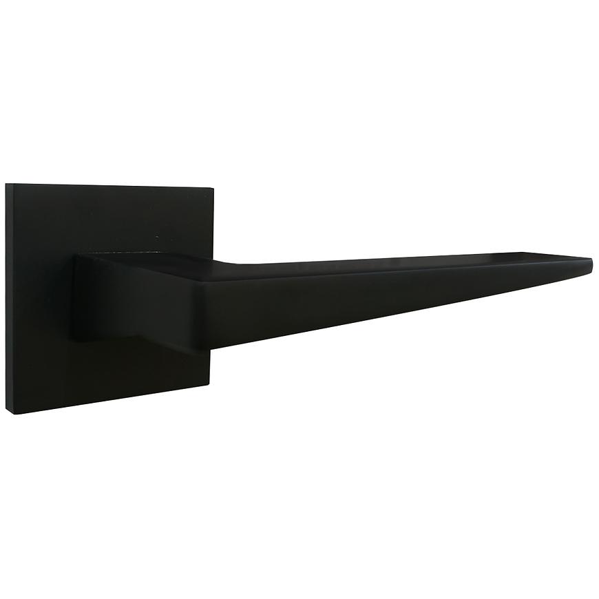Klamka do drzwi wewnętrznych IBIZA w kolorze czarnym na rozecie kwadratowej. W opakowaniu komplet.