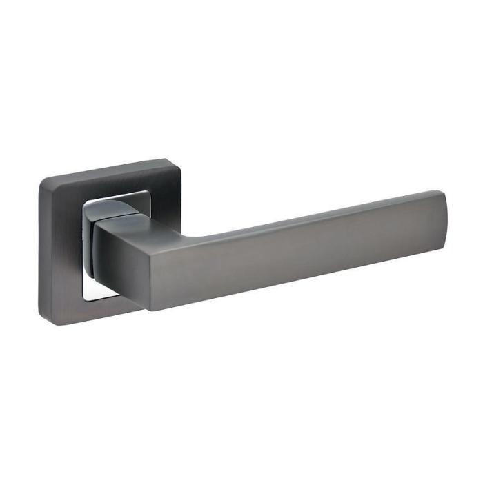 Klamka drzwiowa TOMA R62 w kolorze antracyt/chrom do drzwi wewnętrznych. Nowoczesny design z kwadratową rozetą idealny do każdego wnętrza.