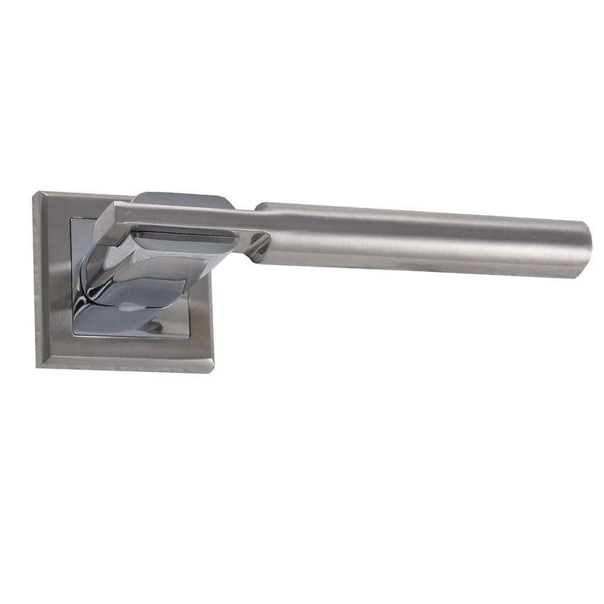 Klamka drzwiowa VERA ZR09 w kolorze nikiel/satyna do drzwi wewnętrznych. Kwadratowa rozeta i elegancki design idealny do nowoczesnych wnętrz.