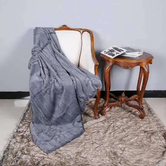 Ciemnoszary koc 130x170 cm sprawdzi się jako narzuta na kanapę, dodatkowe okrycie do łóżka lub praktyczny koc do relaksu w ciągu dnia. Neutralny kolor i tłoczony wzór pozwalają dopasować koc do każdego wnętrza, wprowadzając przytulny i stylowy akcent.