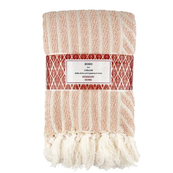 Koc Boho- bardzo delikatny i przyjemny w dotyku. Idealnie wkomponuje się w nowoczesne, a także tradycyjne aranżacje wnętrz i będzie atrakcyjnym, a także praktycznym dodatkiem. Idealnie uzupełni aranżację w salonie, pokoju dziennym lub innym pomieszczeniu. Może być również stosowany jako narzuta, wpisując się w najnowsze trendy.