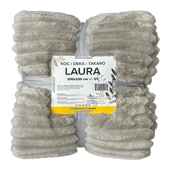 Duży koc 200x220 cm może być wykorzystywany jako narzuta na łóżko, eleganckie nakrycie na kanapę lub miękki koc do relaksu. Materiał wykonania – wysokiej jakości poliester – sprawia, że koc jest odporny na codzienne użytkowanie i zachowuje swój wygląd przez długi czas. Koc Laura można prać w temperaturze 30°C oraz suszyć mechanicznie, co znacząco ułatwia utrzymanie go w czystości. Produkt nie wymaga prasowania ani czyszczenia chemicznego, a także nie powinien być chlorowany, co pozwala zachować puszystą strukturę włókien.