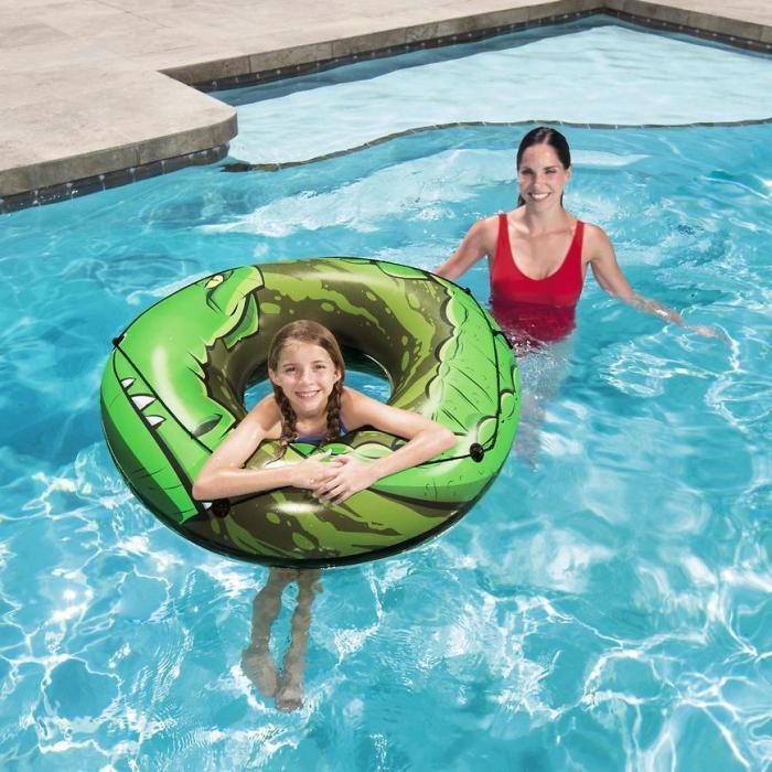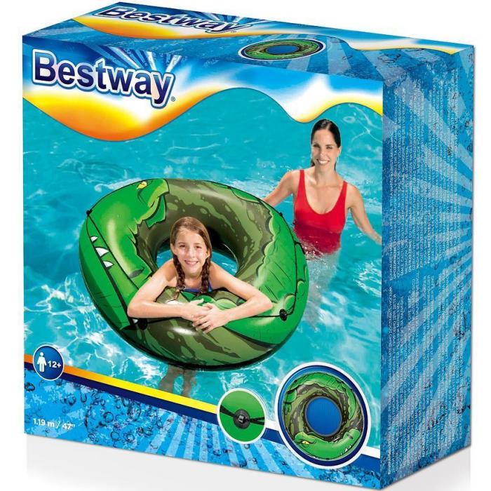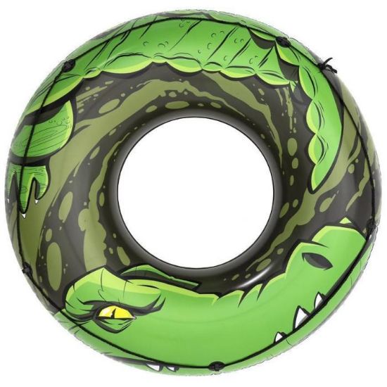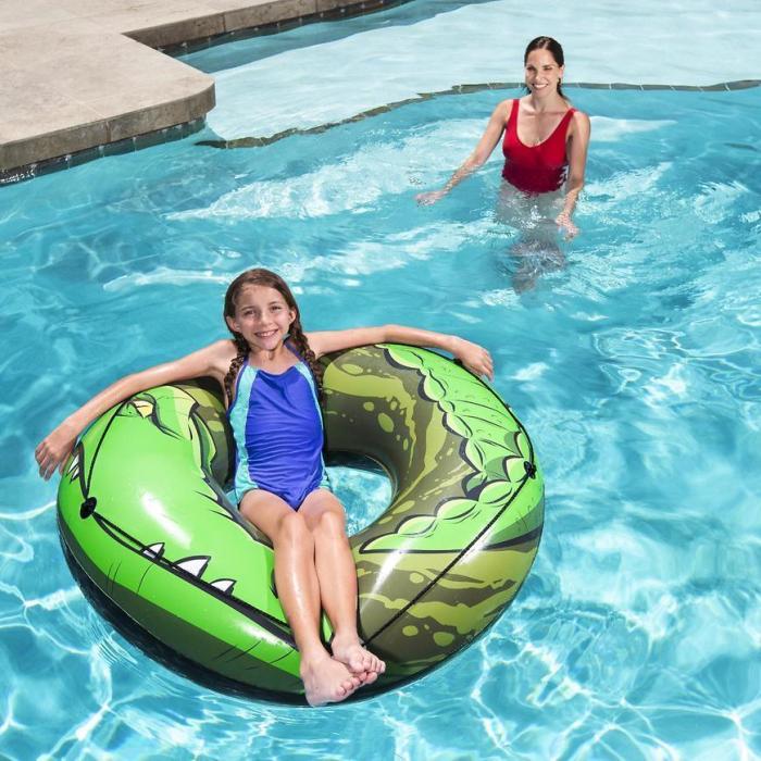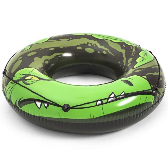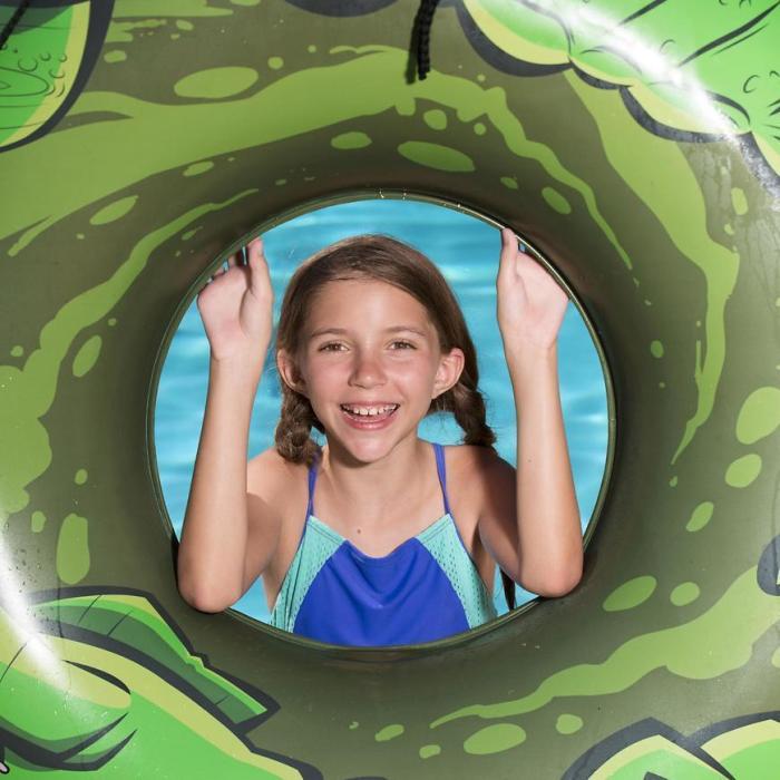Koło dmuchane Bestway® River Gator przyniesie dzieciom wiele zabawy podczas letnich, upalnych dni. Wzór aligatora oraz owinięty sznurek z wbudowanymi przelotkami zachwycą każdego. Dzięki sznurkowi, dziecko z łatwością wejdzie do koła.