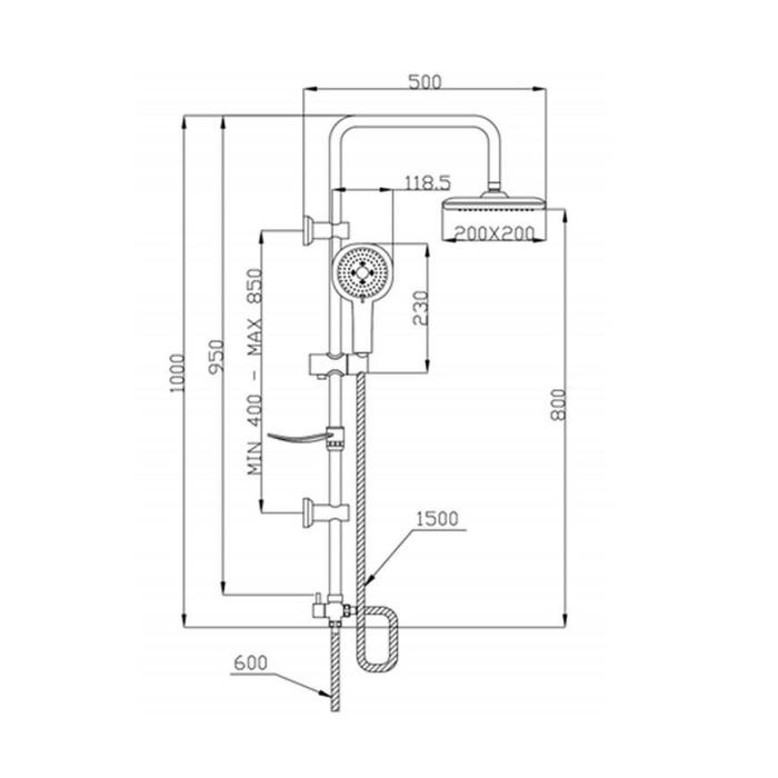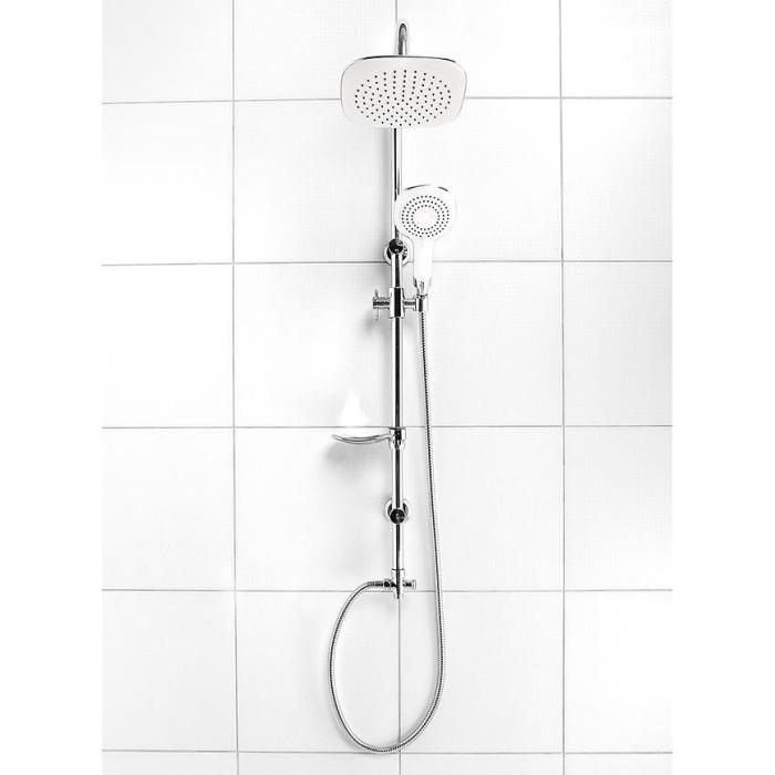 Kolumna natryskowa, wykonana w kolorze biały/chrom ze stali oraz tworzywa sztucznego.