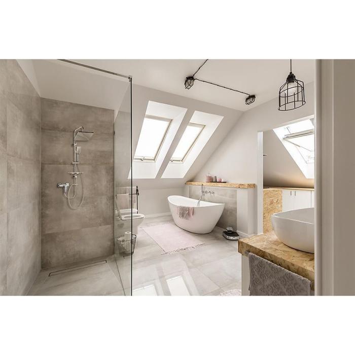 Kolumna natryskowa, wykonana w kolorze chrom ze stali oraz tworzywa sztucznego.