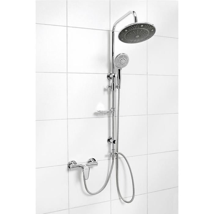 Kolumna natryskowa, wykonana w kolorze chrom ze stali oraz tworzywa sztucznego.