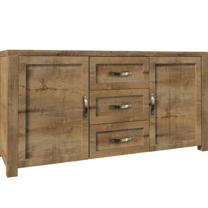 Komoda Nevada to połączenie elegancji, stylu i funkcjonalności. Szafka w kolorze dąb lafkas świetnie odnajdzie się w nowoczesnych wnętrzach jak również we wnętrzach klasycznych. Idealna do salonu lub pokoju dziennego. Z pewnością wpasują się w wiele aranżacji. Komoda posiada szuflady i drzwiczki dzięki czemu ma łatwy dostęp do wnętrza oraz odpowiednią przestrzeń do przechowywania. Do kompletu można dokupić inne meble z kolekcji Nevada.