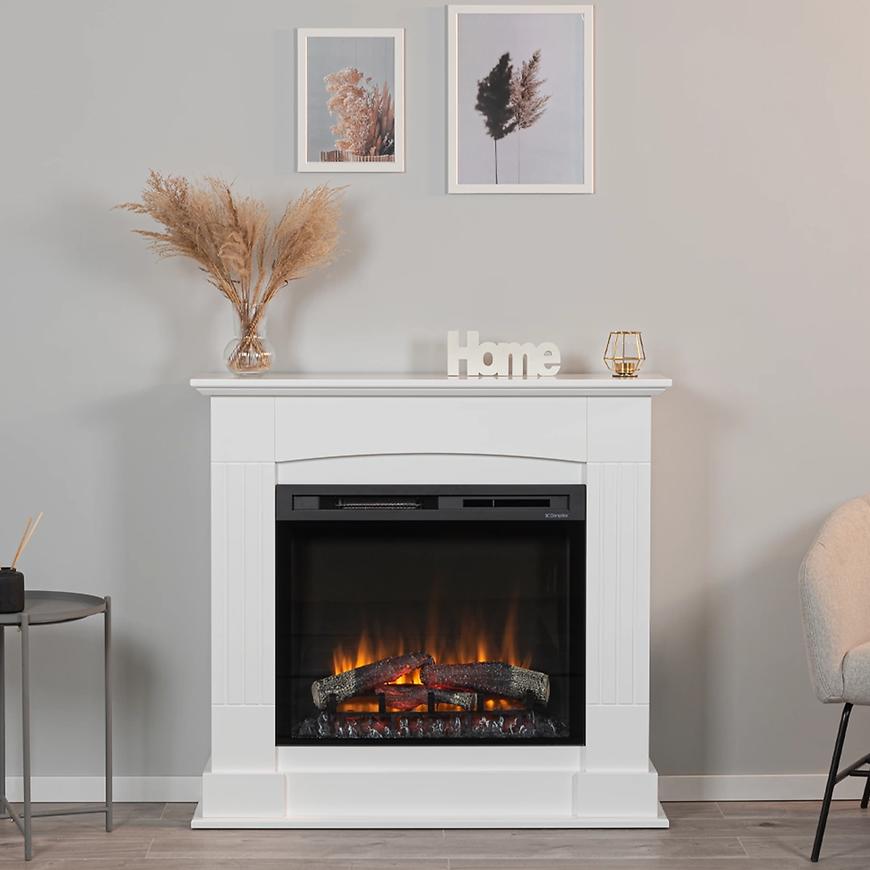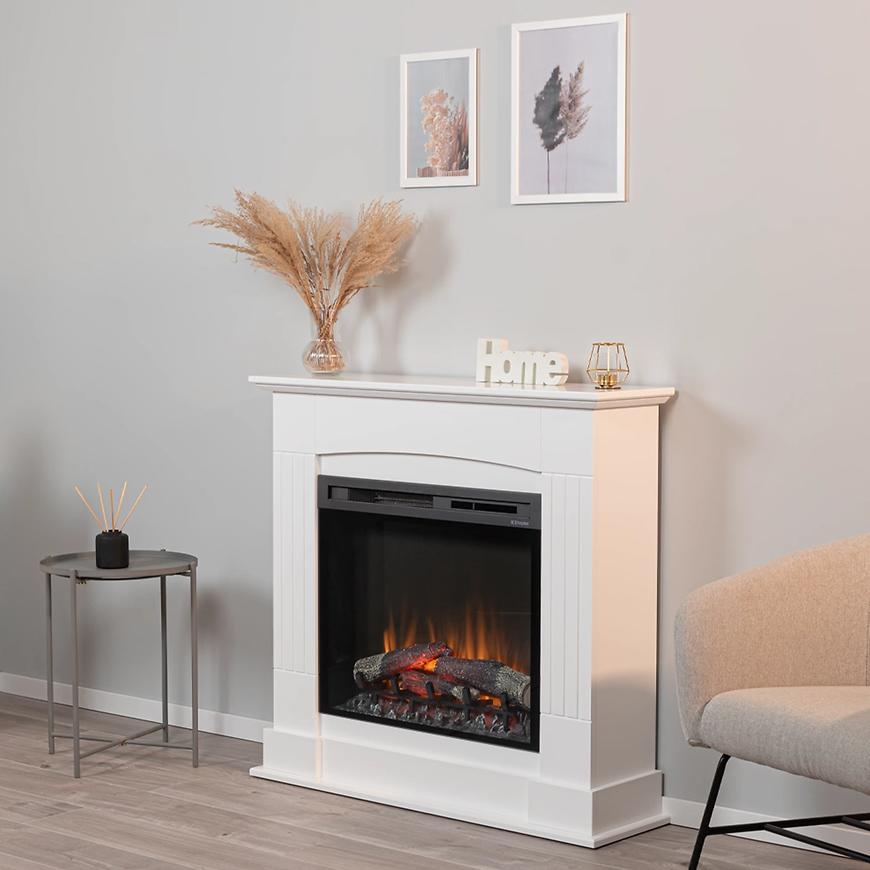 Kominek elektryczny Cavo 28 biały to klasyczny model o eleganckim, matowym wykończeniu w kolorze białym. Zastosowany efekt płomienia Dimplex Optiflame® zużywa jedynie 7 W energii, tworząc realistyczną i nastrojową wizualizację ognia. Funkcja grzewcza o mocy 1,4 kW pozwala na ogrzanie pomieszczeń do 14 m², a elektroniczny termostat umożliwia regulację temperatury w zakresie 17–26 °C. Dodatkowo kominek został wyposażony w regulator czasowy, technologię LED oraz pilot zdalnego sterowania, co zapewnia wygodę użytkowania. Solidna konstrukcja o wymiarach 1010 × 1070 × 300 mm i wadze 56 kg sprawia, że model ten jest zarówno praktyczny, jak i stylowy, idealnie dopełniając klasyczne wnętrza.