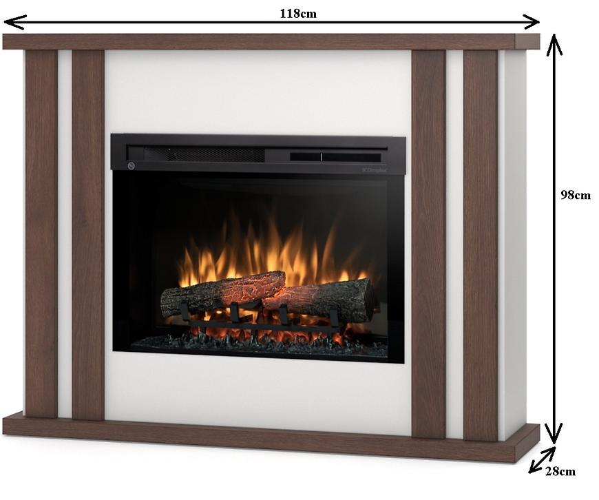 Kominek elektryczny Kelso 28 w kolorze biały/ciemny dąb to klasyczne i eleganckie urządzenie, które łączy stylowy wygląd z funkcjonalnym ogrzewaniem. Wyposażony w efekt płomienia Dimplex Optiflame® oraz regulowany termostat elektroniczny (17°–26°C), pozwala precyzyjnie kontrolować temperaturę. Kominek oferuje moc nominalną 1,4 kW, niski pobór energii efektu płomienia (7 W) oraz funkcję regulatora czasowego. Sterowanie jest wygodne dzięki pilotowi zdalnego sterowania, a technologia LED zapewnia realistyczny i efektowny efekt płomienia. Matowe wykończenie i klasyczny styl łączą komfort, oszczędność energii i estetyczny wygląd.