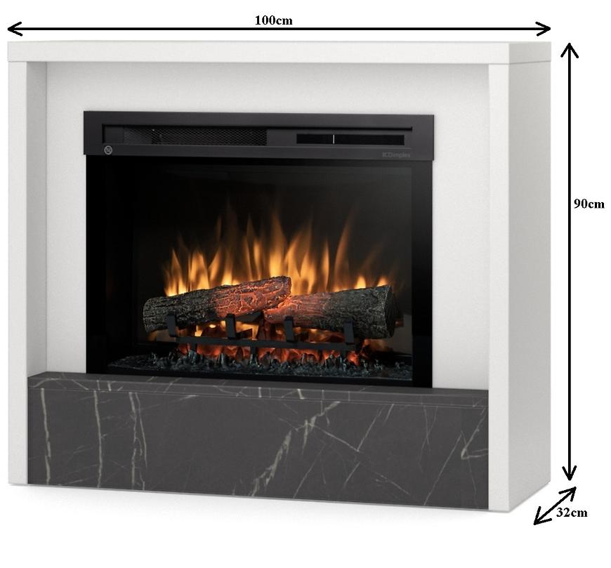 Model Klar wyposażony został w nowoczesny wkład Dimplex Optiflame®, który oferuje niezwykle realistyczny efekt płomienia oparty na technologii LED. Migoczące światło tworzy iluzję prawdziwego ognia, a dodatkowa możliwość personalizacji wyglądu płomieni pozwala dopasować efekt wizualny do własnych preferencji. Co więcej, kominek posiada funkcję grzewczą o mocy 1,4 kW, dzięki czemu skutecznie dogrzewa pomieszczenia o powierzchni do 14 m². Elektroniczny termostat umożliwia płynną regulację temperatury w zakresie od 17°C do 26°C, a wbudowany regulator czasowy zwiększa wygodę użytkowania i pozwala oszczędzać energię.